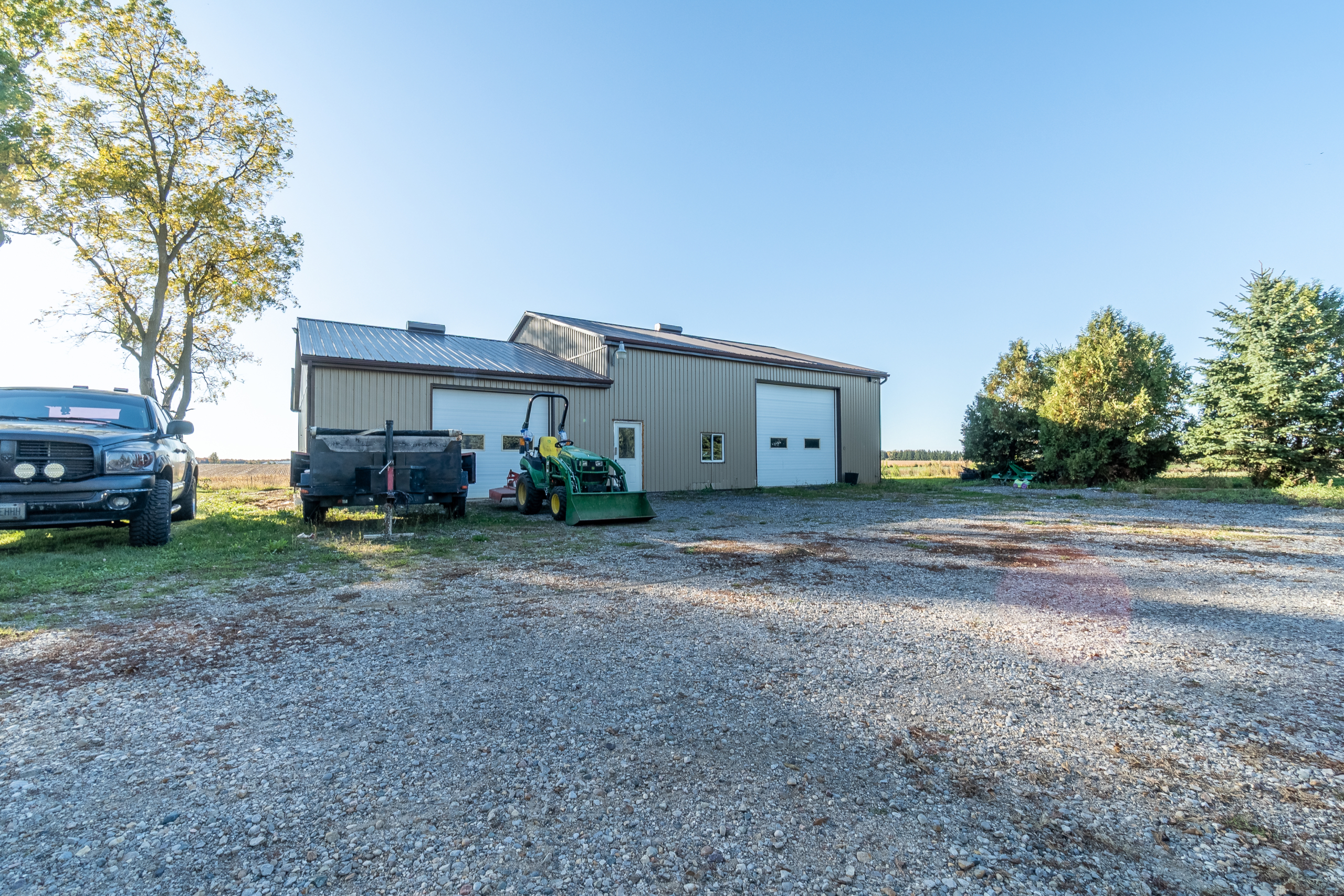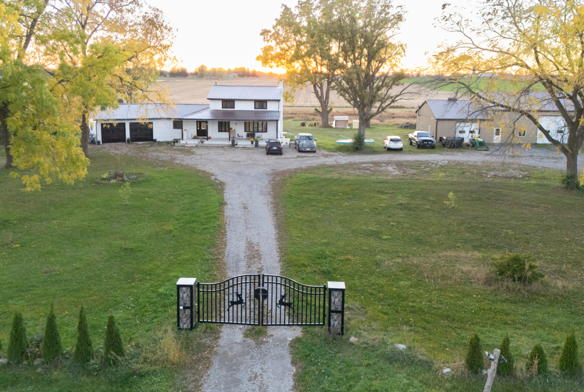 | Tucked away just minutes northwest of St. Marys, this inviting country property offers the perfect blend of peaceful rural living and space for a growing family. Set on just over 10 acres in beautiful Southern Perth County, the home sits privately surrounded by mature trees and open green space, creating a setting that feels both serene and spacious. Inside, the home features a bright open-concept kitchen and dining area, recently updated and filled with natural light from a large picture window overlooking the front yard. The thoughtful layout includes a convenient mudroom and laundry area with access to the attached double garage-perfect for busy family life. Upstairs you’ll find four comfortable bedrooms and a beautifully renovated three-piece bathroom, providing plenty of room for family and guests. The finished lower level offers additional living space with a cozy rec room complete with a freestanding fireplace and wood bar, a home gym area, and a storage room with direct garage access. Step outside and enjoy the wide-open space that makes country living so special-room for kids to explore, family gatherings, and peaceful evenings taking in the unobstructed sunset views. Adding incredible versatility to the property is a large heated 40′ x 40′ detached shop with high-clearance ceilings and a roll-up door, plus an attached 40′ x 24′ workshop featuring running water, a compost toilet, and office space with kitchenette-ideal for hobbies, a home-based business, or extra workspace. A rare opportunity to enjoy the privacy of rural living while still being just a short drive from town amenities. This is the kind of property where families can truly settle in, spread out, and enjoy everything country life has to offer. |
